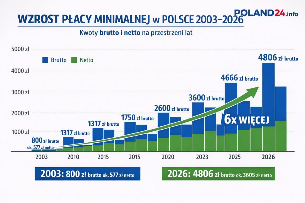Płaca minimalna w Polsce na przestrzeni lat (2003-2026)