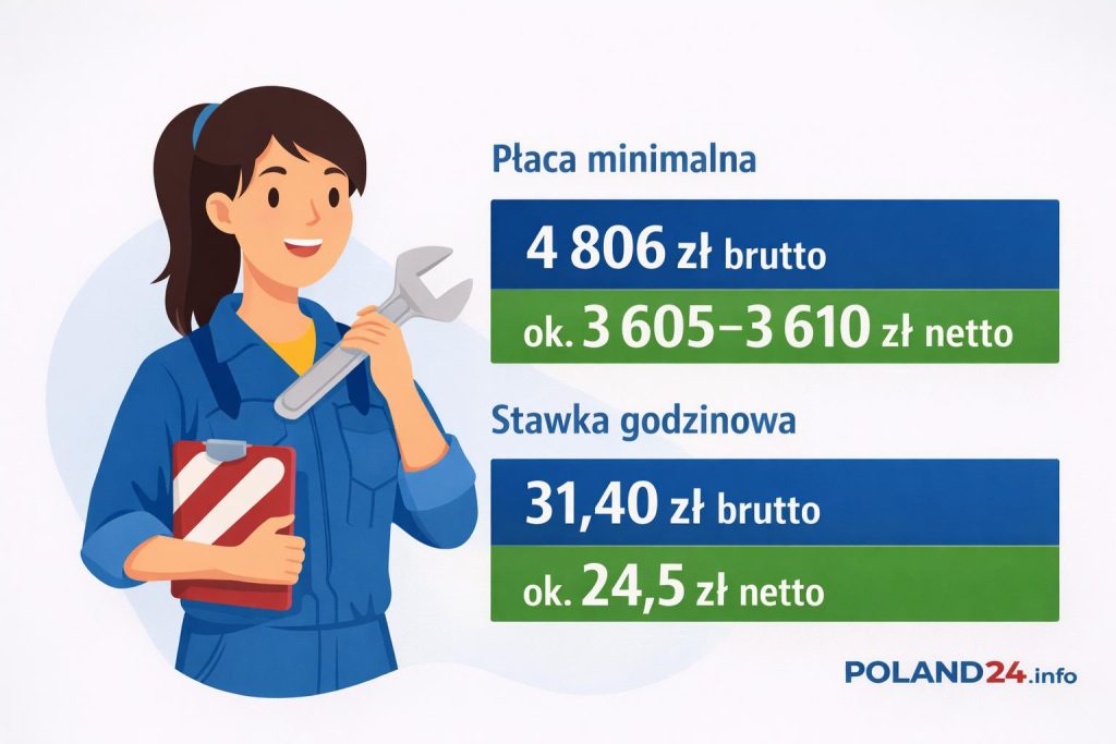 W Polsce minimalna kwota brutto to 4 806 zł , co przekłada się „na rękę” 3 605 zł.
